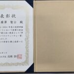 素晴らしい表彰状をいただくことができ、大変嬉しい限りです。